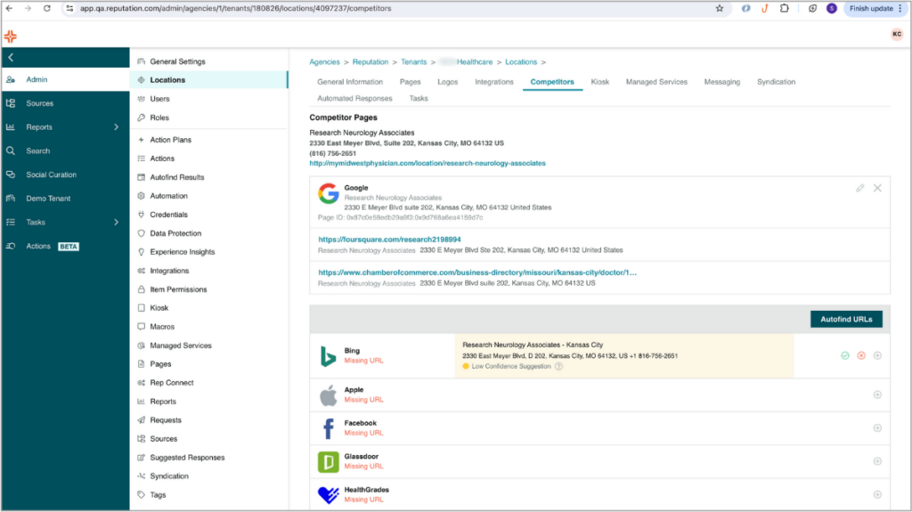 Users with an Admin role can effortlessly access Autofind suggestions directly on competitor location pages. This enhanced capability empowers you to accept or reject suggestions and add URLs to trigger Autofind locations, streamlining your competitive analysis and strategy.