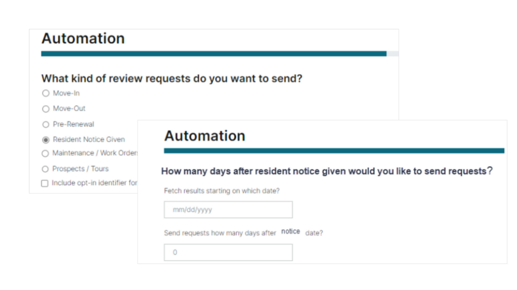 Entrata: We’re extending the capabilities of our Entrata connector to include a “Notice Given” trigger, which sends an automatic review request when a tenant notifies you they won’t be renewing their lease.
