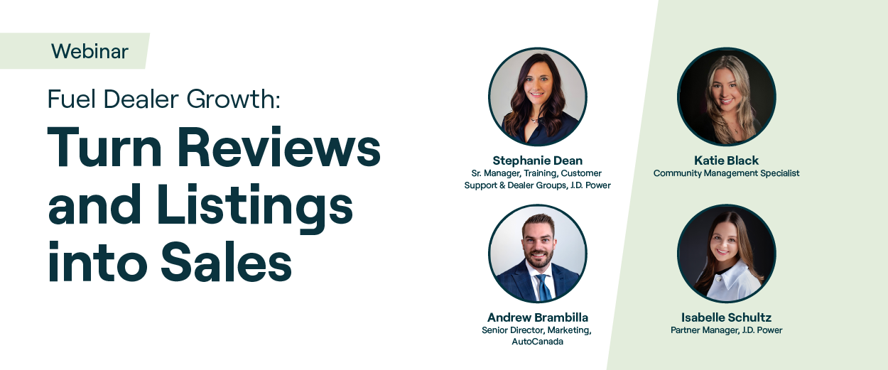 Today’s auto buyers crowdsource reviews, analyze listings and seek out peer feedback long before they step onto your car lot. In this webinar, leaders from AutoCanada and J.D. Power explain how top dealers turn reviews, listings and customer feedback into powerful tools that drive sales and improve customer experiences. Also learn how to: